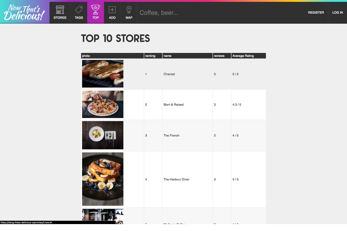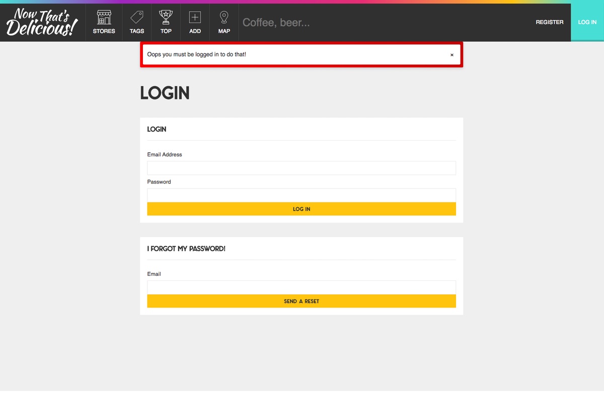 The application has 3 main models - Users, Stores and Reviews - all of which are relational. It is designed to hit upon many of today's application needs such as user authentication, database storage, Ajax REST API, file uplaod and image resizing.